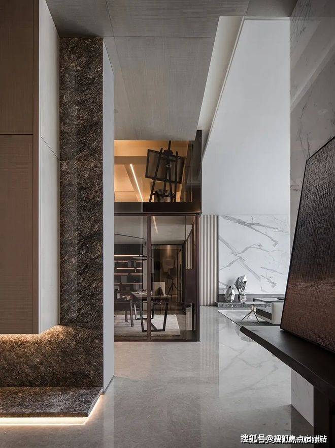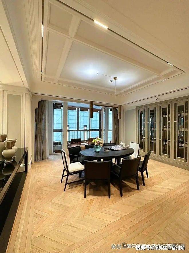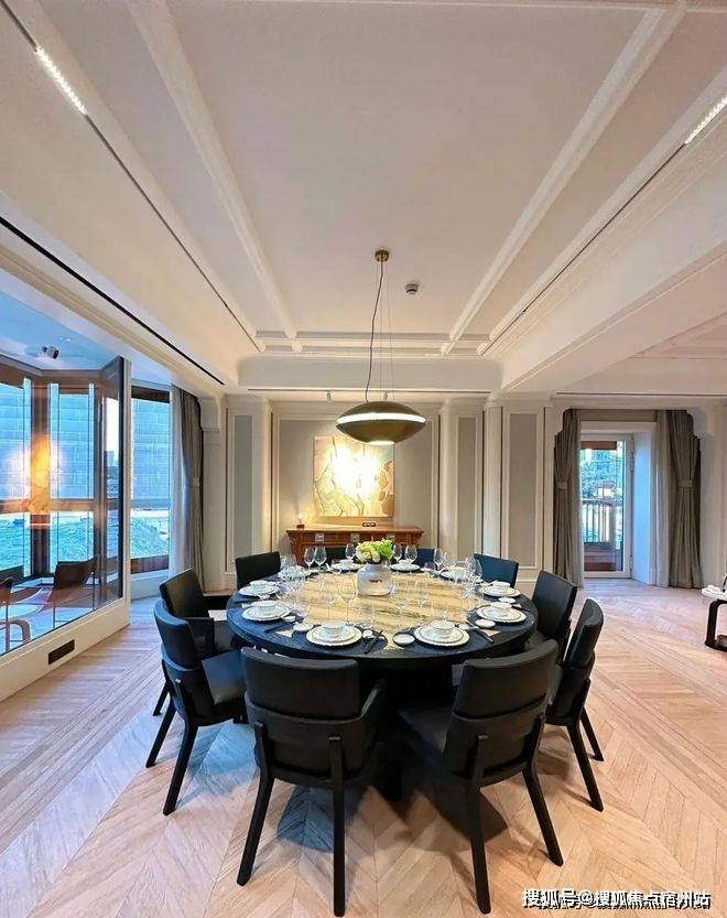走进 363㎡的户型,空间的开阔感扑面而来 。一踏入屋内,首先映入眼帘的便是宽敞明亮的客厅,约 8 米的超大面宽,搭配全景落地窗,让阳光毫无保留地倾泻而入 ,整个空间显得格外通透明亮。在这里,您可以与家人围坐在一起,享受温馨的家庭时光;也可以邀请朋友前来聚会,宽敞的空间足以容纳欢声笑语 。客厅连接着景观阳台,站在阳台上,浦江两岸的壮丽景色尽收眼底,让您仿佛置身于一幅美丽的画卷之中 。餐厅与客厅一体化设计,空间连贯流畅,方便家人用餐和交流 。餐厅旁的西式厨房,配备了顶级的嘉格纳厨电,无论是烹饪精致的西餐,还是制作丰盛的中餐,都能让您尽情展现厨艺 。中厨采用封闭式设计,有效地隔绝了油烟,同时也保证了厨房的整洁和卫生 。